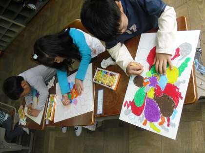 チョコレートぬりで、ふしぎなおはなを描きました。