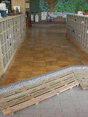 昇降口で子どもたちが上靴に履きかえるときに使っている「すのこ」を,きれいに安全に,リニューアルしました。管理用務員さんが工夫して修理してくれた「すのこ」に子どもたちも「きれいになったね」と喜んでいます。