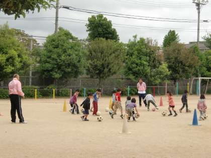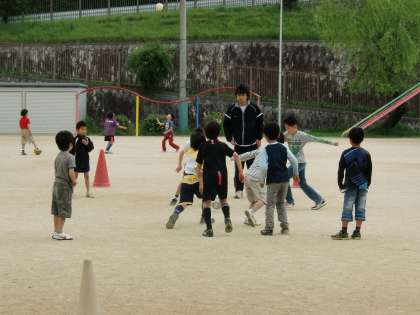 12日土曜日,今年第1回目のふれあいサッカー教室がありました。20名以上の子ども達が参加し,楽しそうにボールを追いかけていました。次回は7月7日土曜日です。たくさん参加してください。