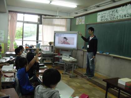 社会の学習の様子です。今日は聖徳太子の国づくりについて調べました。教科書や資料集から,調べたい課題に関係するところをみつけ,たくさん発表していました。