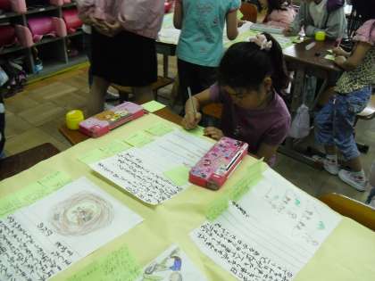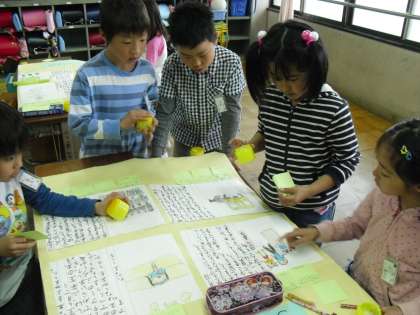 「ぼくも○○さんと同じところに行ったことがあるよ。」「わたしも行ってみたいな。」など、たくさんの感想をもらって、ニュースを書いた本人もうれしそうでした。
