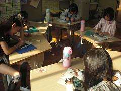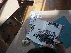 部活動文化部のひとつクラフト部では,切り絵に取り組んでいます。今日のテーマは「金魚」です。細かく紙を切って形にしていく作業は大変ですが,でき上がりがとても楽しみです。