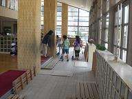 昇降口は,運動場からみんなの靴についてくる砂ぼこりでいっぱいです。すのこの板をあげて,きれいに掃きそうじをしています。