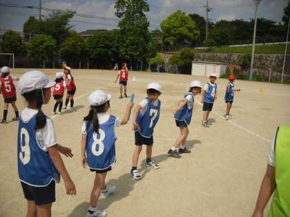 3年生になって,「リレー」の学習が始まりました。2年生までは,輪のバトンでしたが,3年生からは筒のバトンに代わりました。バトンパスと走る順番をチームで工夫し,少しでもタイムを縮める努力をしています。