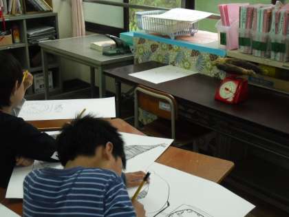 計量の絵を描き始めました。今回は,スケッチペンでタケノコとはかりを,次は自分や友達を描きます。どんな絵に仕上がるか楽しみです。