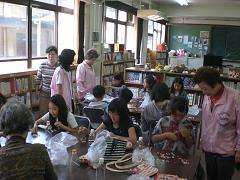 5月19日の土曜日に,ふれあい活動が図書室で行われました。今回は地域女性会に指導していただき,かわいいペットボトルの風鈴が出来上がりました。