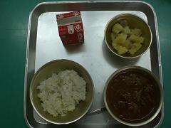 今日の給食献立は,大人気のハッシュドビーフです。みんなしっかりいただいて,笑顔で調理員さんに「ごちそうさまでした!」の挨拶をしていました。給食委員会もしっかり,仕事をしています。ごくろうさまです!