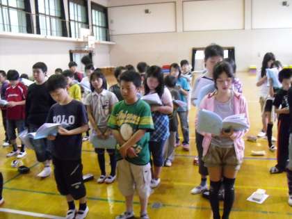 いよいよ山の家への出発が近づいてきました。今日は,山の家で行うキャンプファイヤーの歌の練習をしたり,班に分かれて,行き帰りのバスの座席や野外炊事の仕事分担などをしました。「早く行きたい!!」と言う子どもたちの声があちらこちらから聞こえてきます。