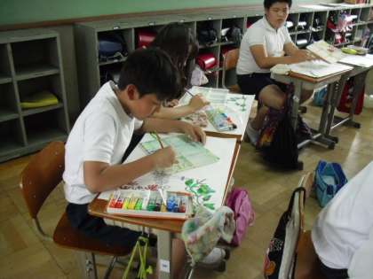ペンで下絵を描き終わったので,今日からは色つけです。