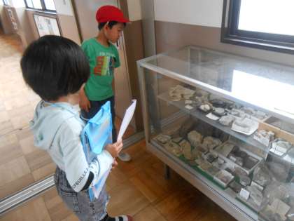 「がっこうたんけん」では、普段入ることができない特別教室に入ることができました。1年生は興味深々でした。