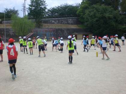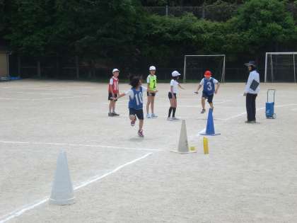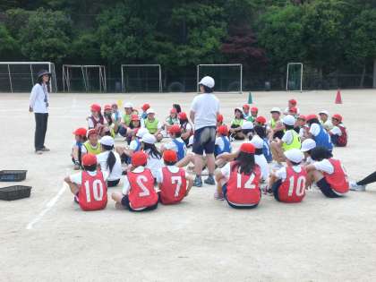 「バトンをもらう人は,前を向いて,リードをする」ということを確認して2回戦をしたところ,ずいぶん上手にバトンパスができるようになってきました。