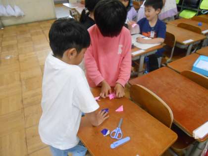 図書室に本を借りに行ったり、友達と折り紙をしたり、iPadでミライシードを使って数の問題に取り組んだり・・・。