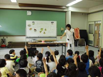 子どもたちは自分の生活を振り返りながら、「おやつは時間を決めて食べる」「好き嫌いをしない」「食事のあとは必ず歯をみがく」など気をつけようと思うことを考えていました。