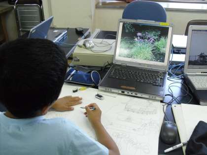 今日は,そのときにそれぞれ撮ってきた写真の画像を見ながら,下書きを仕上げました。桃山城の堂々とした姿や,美しく咲いていた花の様子など,丁寧に描くことができました。