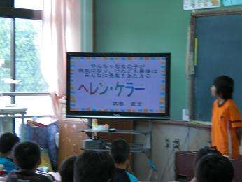 4年生は,算数の折れ線グラフや読書紹介のプレゼンを大型テレビに大きく写して学習しました。体育館では,跳び箱の練習をたくさんの方々に観ていただきました。