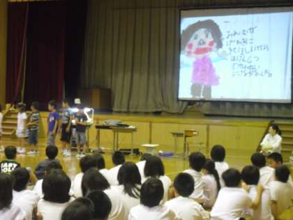 いよいよ今日は子ども達にとってはじめてのかめのこタイムでした。全校のみんなの前で発表するということで、やはりどの子もずいぶん緊張していました。でもどのグループも力を合わせてがんばっていました。言葉を忘れているお友達に、そばから小さな声で教えてあげる姿も見られて、子ども達の一生懸命な気持ちが伝わってきました。「わたしの知らなかったこともたくさんありました。」という上級生の感想ももらうことができて、子ども達は、やりとげた思いを味わうことができたことでしょう。
