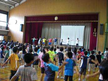 夏休みに向けてラジオ体操第1の練習をしました。まだまだ覚えきれていませんが,運動委員会のリードでがんばります!