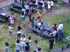 中間休みに,ちょうど雨がやみました。たけのこのシャボン玉屋さんは,今日は4年生の番です。運動場が使えないので,中庭はおお賑わいです。みんなで雨の止み間にシャボン玉を楽しみました。