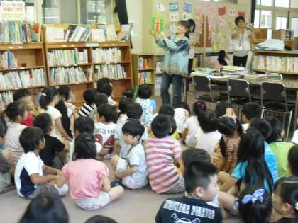 17日火曜日の中間休みに、図書ボランティアの方による絵本の読み聞かせがありました。絵本は「いいからいいから」と「じごくのそうべい」の2冊で、どちらも子ども達には人気の作品。1年生の子ども達はふだんから、読み聞かせが大好き。今日もつぶやいたり笑い声をあげたり思い思いの反応をしながら、お話の世界を楽しんでいました。
