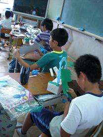 6年生は図工で動くおもちゃ作りに取り組んでいます。クランクやカムを使って,動きを工夫した夢のある作品ができています。