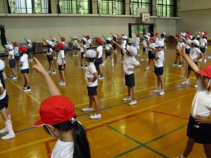 運動会まであと1週間となり、運動会のダンスの練習も最後の仕上げに入ってきました。今日は、みんなで動きをそろえることをめあてに、一生懸命踊りました。