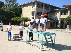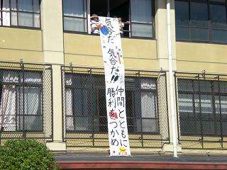 今日は,1日延びた全校練習をおこないました。入場から開会式のリハーサルです。応援団や1年生の言葉も練習しました。運動会のテーマの垂れ幕も披露され,運動会が近づいてきました。