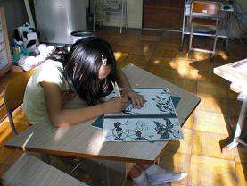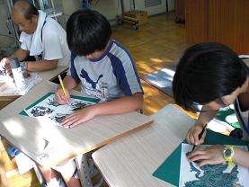 水曜日の放課後は,3つの部が活動しています。その一つ,クラフト部は切り絵に取り組んでいます。細かい作業に集中して,美しい作品を仕上げていきます。