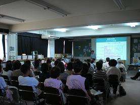 PTA・学校運営協議会・学校共催の家庭教育学級が開かれました。京都府地球温暖化防止活動推進センターの木原事務局長さん,京都市環境政策局地球温暖化対策室の山下さんのお二人に来ていただき,「目からうろこ!今すぐできる省エネ」〜すぐに役立つ節約術が満載〜のテーマでPTA・地域の方々と教職員が学習しました。楽しく分かりやすく「目からうろこの省エネ」を教えていただき有難うございます!参加者は,京都市のエコ学区事業【うちエコ診断】を受けることができます。10月末から11月初旬に,またご指導をよろしくお願いします。