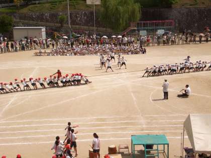 プログラム12番、チャレンジ種目の「つなひき」。