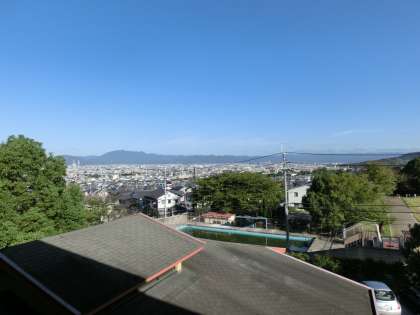 毎年秋になると,校舎の3階から京都の街が遠くまで見晴らせます。京都タワーがしっかりと見えますが,もっと空気が澄んでくると左大文字なども遠く見ることができます。校歌の2番の「古き都を見遥かす・・」の歌詞そのままの眺めです。