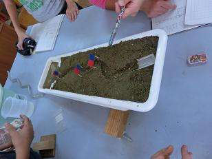 5年生は理科で「流れる水の働き」を学んでいますが,いよいよ流水の実験が始まりました。それぞれの班で,装置を使って水を流して観察しています。
