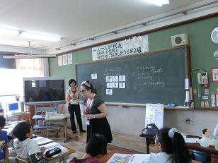 10月は,英語のALTサラ先生の国ではハロウィンの季節です。猫の耳のヘアバンドで扮装しての外国語活動の時間を担任に先生と2人で楽しい時間にしてくれました。