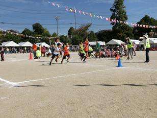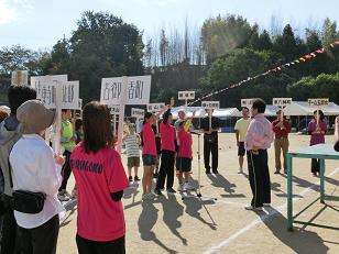 いよいよ開会式です。教職員のチーム五郎太も,各町内チームの最後に入場行進しました。子どもたちは,チームのために全力で走っています。