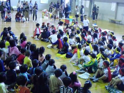 まずは一年生の「なかよしまつり」で、射的や輪投げなどを楽しみました。