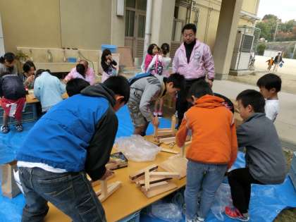 10日土曜日、秋晴れの空のもと,PTAオータムフェスタが始まりました。地域の方々にも協力していただいて、木工や箸づくり,カードづくり、グランドゴルフなど楽しいコーナーがいっぱいです。おとなも子どもも一緒になって楽しめる素敵な一日です。