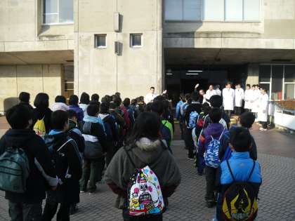今日は冬休み明けの初日にもかかわらず,科学センター学習に行ってきました。最初は1・2組わかれて体験学習を行い,その後合同でプラネタリウムを見て帰校しました。1組は「こちら!こども発電所」という学習で,効率よく電気を起こす実験やつくった電気をためる実験などをしました。2組は「みてみてアルテミア」という学習で,アルテミアという生き物の形態や行動を観察したり,調べたりする実験をしました。どちらも子どもたちは興味をもって学習に取り組んでいました。