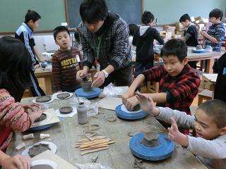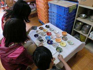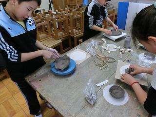 陶芸教室3・4時間目は,2組とたけのこ学級の1年生が土をひねってお皿やカップ,湯飲み茶碗など,思い思いの作品を創っています。最後に上薬の色を選んで,焼き上げてもらいます。どんな作品に仕上がるのか,わくわくドキドキ,楽しみです。造形展に展示しますので,どうぞ仕上がりをご覧ください。