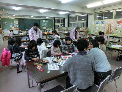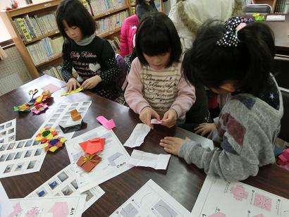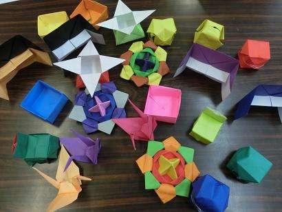 ふれあい活動「作って遊ぼう」の取組が,土曜日に行われました。少年補導委員会を中心に,今回は折り紙を使った創作を指導していただきました。こまや動物など,色とりどりの作品が出来上がりました。
