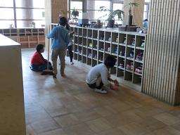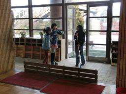 冬になると運動場の霜が溶けて泥になり,みんなの運動靴の底に着きます。しっかり拭っても昇降口が汚れてしまいます。当番さんは,毎日すのこをあげてはき掃除したり,靴箱の中やゆかもきれいふいて頑張っています。
