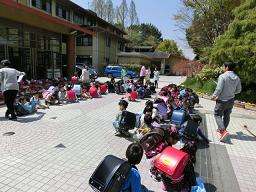 1年生は,地域別に色分けされたグループで下校します。それぞれの色のグループに教職員がついて,しばらくの間下校指導を行います。児童館に行く子ども達もお迎えの先生と一緒に並んで帰りました。明日も元気に来てくれるのを待っています。