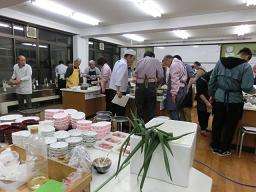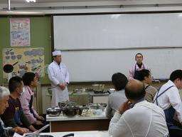 4月12日金曜日の夜,家庭課室で「おやじの会〜料理教室〜」が開かれました。PTAオータムフェスタの木工教室などで活躍している藤城小おやじの会が,男性の料理教室として,料亭清和荘のオーナーで料理長の竹中さんを講師としてお招きし,合わせだしを使った出し巻き,おひたし,うどん作りに取り組みました。男性教職員も参加して,料理の腕と本物を味わうこと舌を磨きました。交流を深め,子どもたちのためにできることを今年度も取り組んで頂けることになりました。