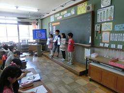 4年生は,前期の目標を漢字一文字で表し,しっかりと毛筆で書きました。それぞれの漢字を選んだ理由を,一人一人が分かりやすく伝わるように発表しました。聞き手の子どもたちも,なるほど!とメモを取りながらしっかりと聞きました。