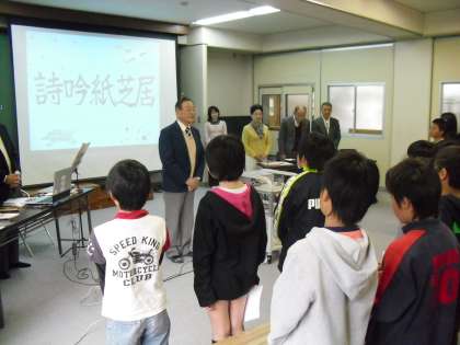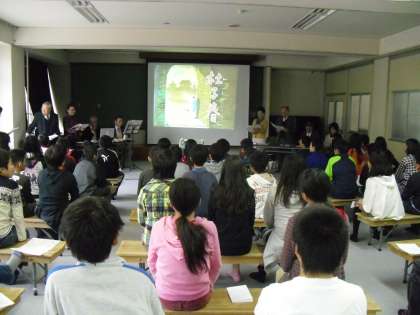23日(火)の5時間目に,詩吟教室がありました。詩吟の先生方から,詩吟は日本の伝統芸能であることを教えていただきました。また,実際に紙芝居や歌で詩吟を披露していただきました。最後には,子どもたちもいっしょに歌を歌ってみるなど,良い経験をすることができました。