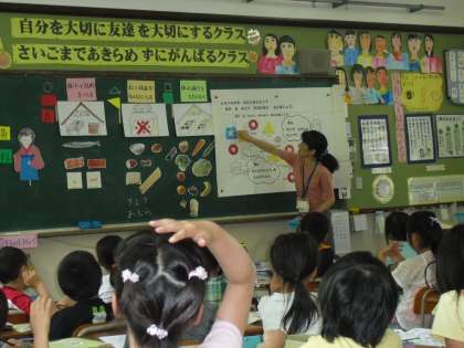 今年から新しく来てくださることになった栄養教諭の平山先生に,「三食分類について知ろう」という内容で1時間授業をして頂きました。赤・黄・緑の食べ物を上手に組み合わせてしっかり食べるようにすると体にとても良いということが皆よくわかったようです。毎日しっかり好き嫌いをせずに食べていきましょう。