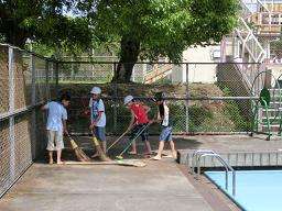 今日は水泳学習の開始にむけたプール清掃を行いました。5年が更衣室やプールサイドを6年と教職員でプールの側面や底をきれいに磨きました。午後から太陽が顔を出して,夏の雰囲気のなか,子どもたちの心の中は,プール開きへの期待でいっぱいのようです。