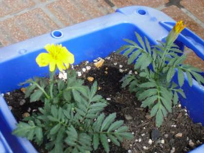 毎日忘れないで水やりをしていたこともあり,マリーゴールドの花が咲きました。水と肥料は大切ですね。あとは,これからも毎日お世話を忘れないでください。花も生きているのですから。