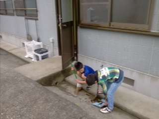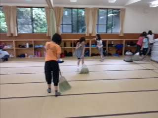 みさきの家での活動も最終日となりました。みんな元気で朝を迎えました。まず,シーツや寝具をたたみ,お世話になった60畳の広間やバンガローの掃除をしました。