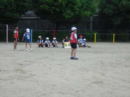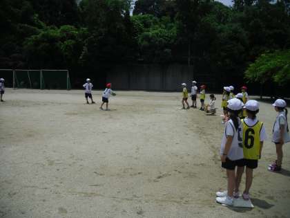 体育で,ハンドベースボールをしています。