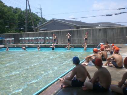 今日は,25メートル泳げるかどうか確かめました。クロール,平泳ぎ,バタフライ,背泳ぎなど,それぞれ自分の得意な泳法で挑戦。見ている子どもたちから,「がんばれ!」という応援の声が上がる中,たくさんの子どもが25メートルを泳ぎきっていました。