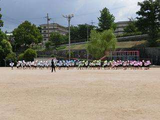 藤城夏まつりのステージ発表にむけて頑張る3年生。今日は本番通りの場所で,音楽に合わせて踊りました。